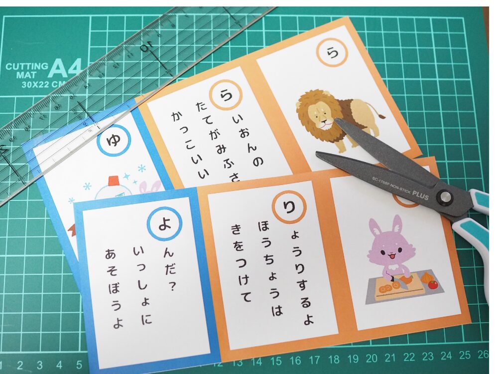 そして印刷したら、厚紙に貼ってしっかりとしたかるたに仕上げましょう!