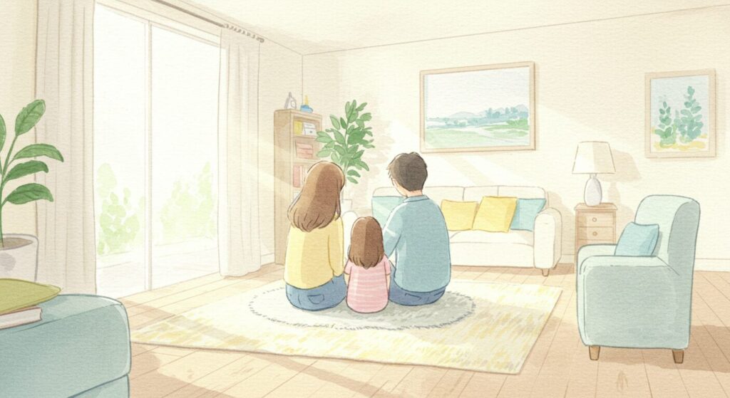 AIにただ「背景はリビング」と入力するだけでは、どんな場面か伝わらないですよね。